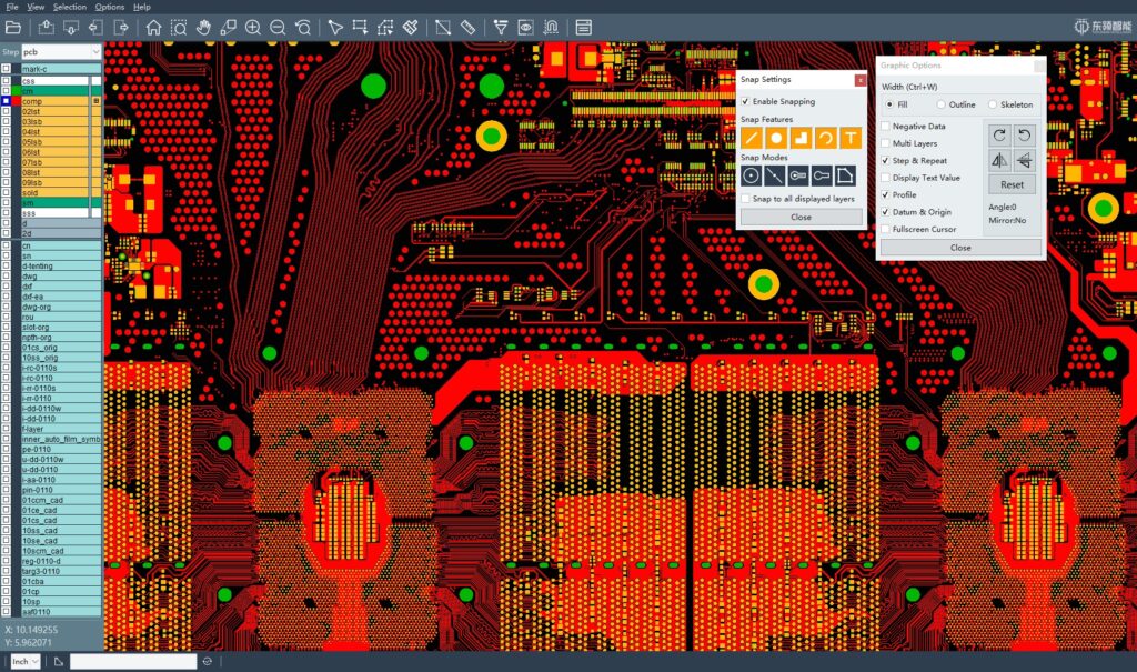 OpenCAM是由無錫東領智能科技股份有限公司開發的一款輕量級PCB CAM圖形查看器?;贑++開發,具有超高的圖形顯示效率,完全支持ODB++8.1格式。